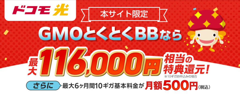 | ソフトバンク光 | ビッグローブ光 | GMOとくとくBB光 | ドコモ光 | auひかり | NURO光 | |
