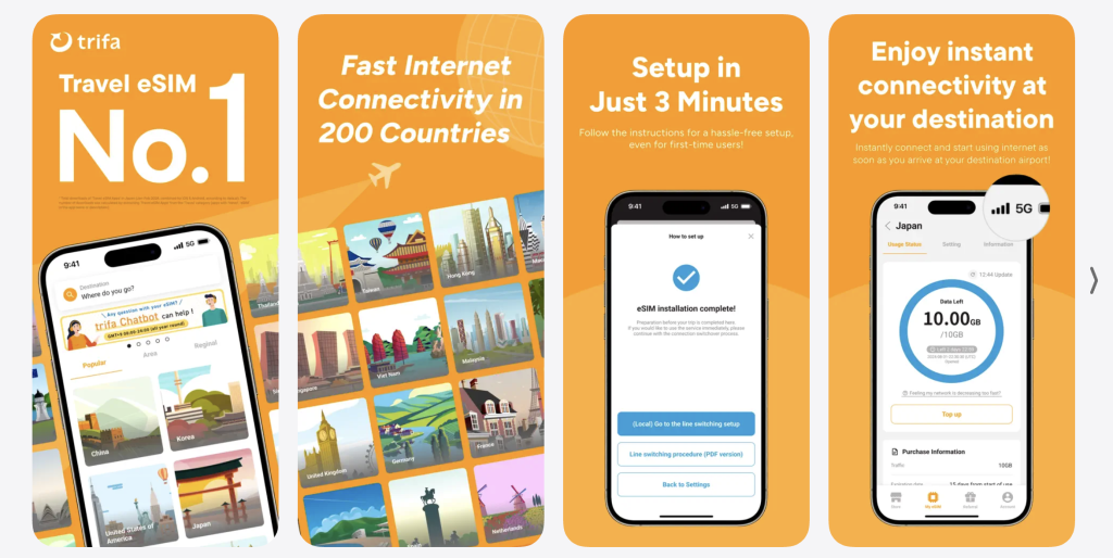 トリファは 国内「旅行用eSIMアプリ」のダウンロード数で、1位を獲得した実績のあるeSIMアプリです。