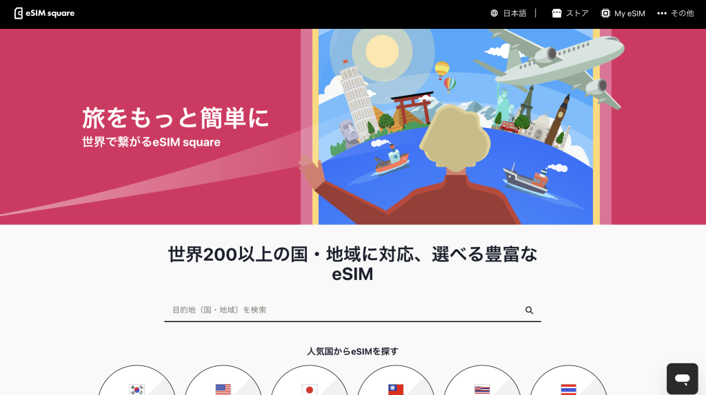 eSIM squareは、日本発の通信サービス会社「テレコムスクエア」が運営するeSIMサービスです。