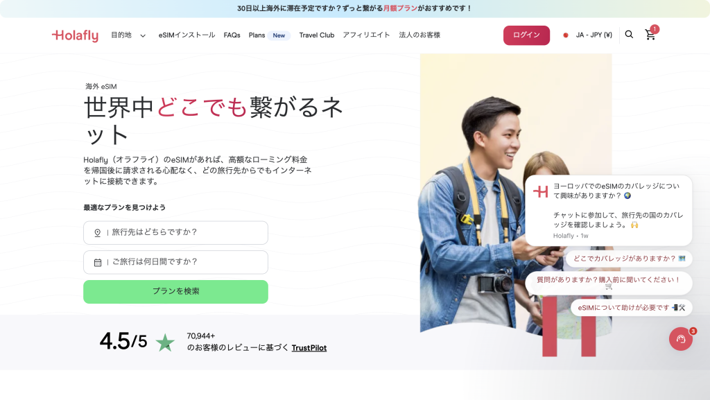 eSIM利用が初めてであれば、日本語でのサポートに対応したトリファが安心です。