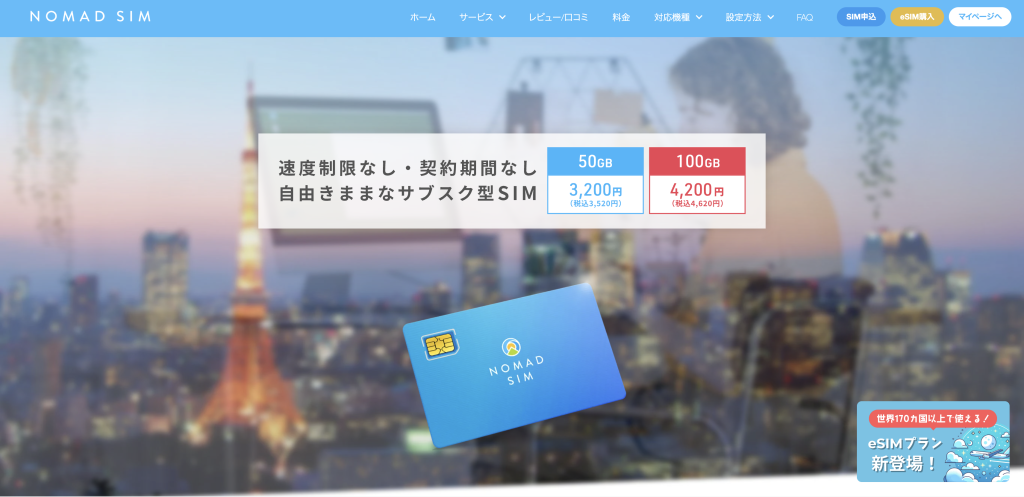 | トリファ | World eSIM | SkyeSiM | Holafly | eSIM square | Glocal eSIM | Nomad eSIM | |