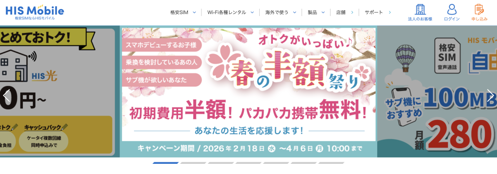 公式サイトからオンラインで簡単に申し込めます。 HISモバイルは店舗での申し込みもできますが、多くのプランは 公式サイトの申込ページからオンライン手続きが可能です。