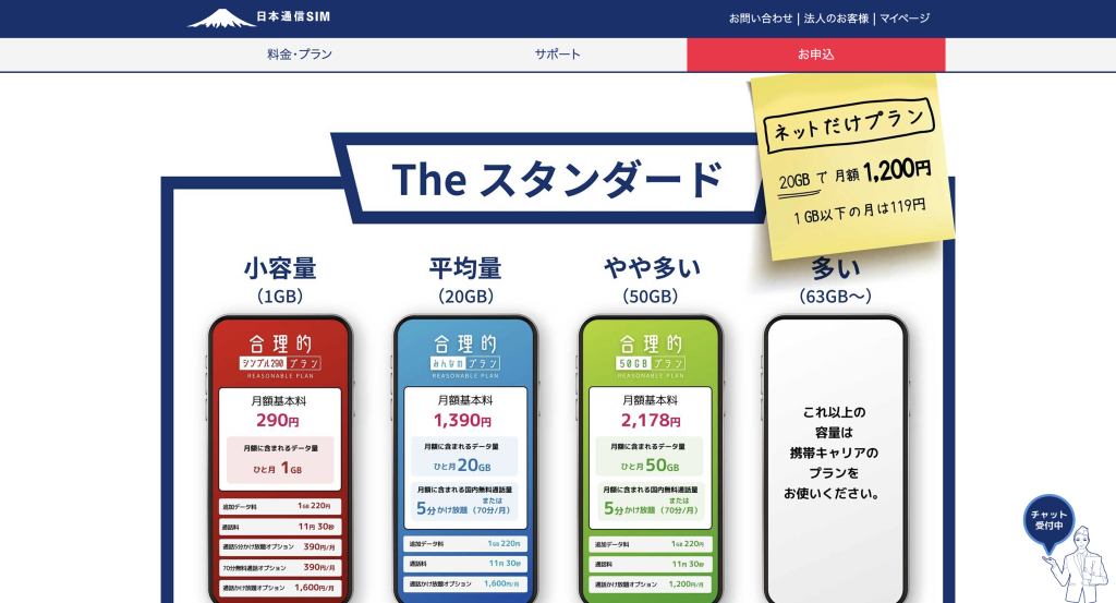日本通信SIMは、1GB/290円という月額料金の安さに定評のある格安SIMブランドです。